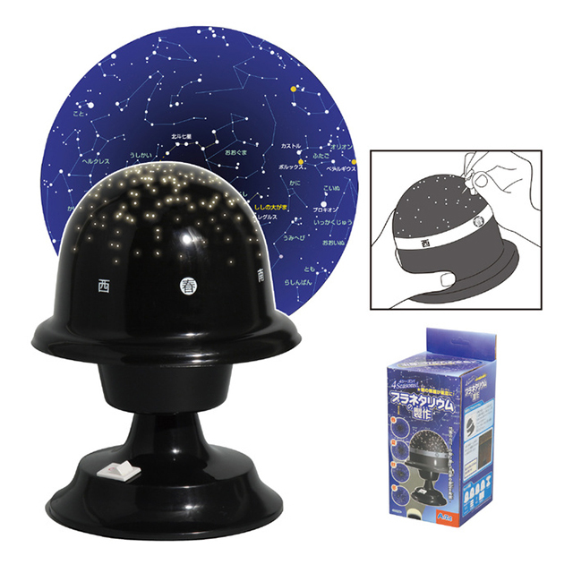 四季の星座ドームに印刷されている星の場所に、付属のピンで穴をあければ、君だけのプラネタリウムができあがり!スイッチを入れれば、君の部屋に星空が広がる。