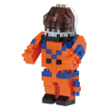 打ち上げや帰還時に宇宙船内で着用する船内与圧服(オレンジスーツ)を着た宇宙飛行士を再現。 両腕は上下に可動します。
