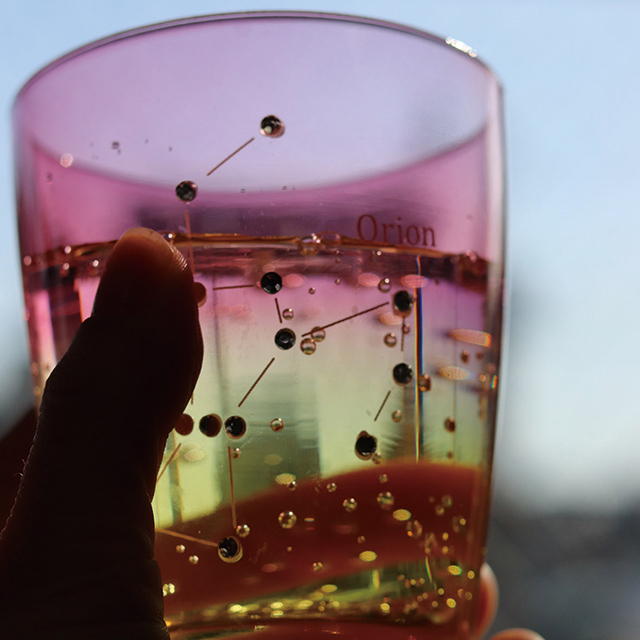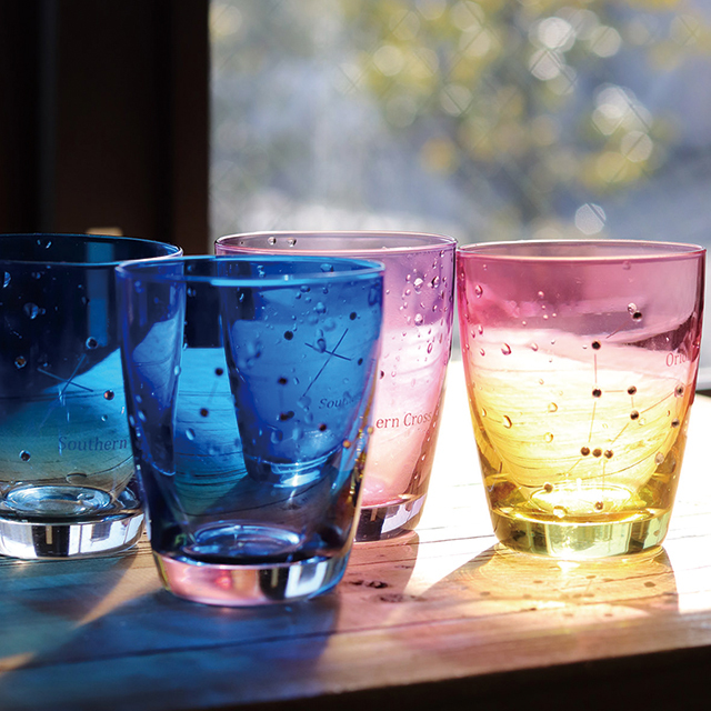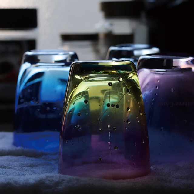 朝焼けのグラデーションに星々が映える美しいグラス。