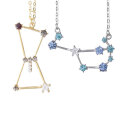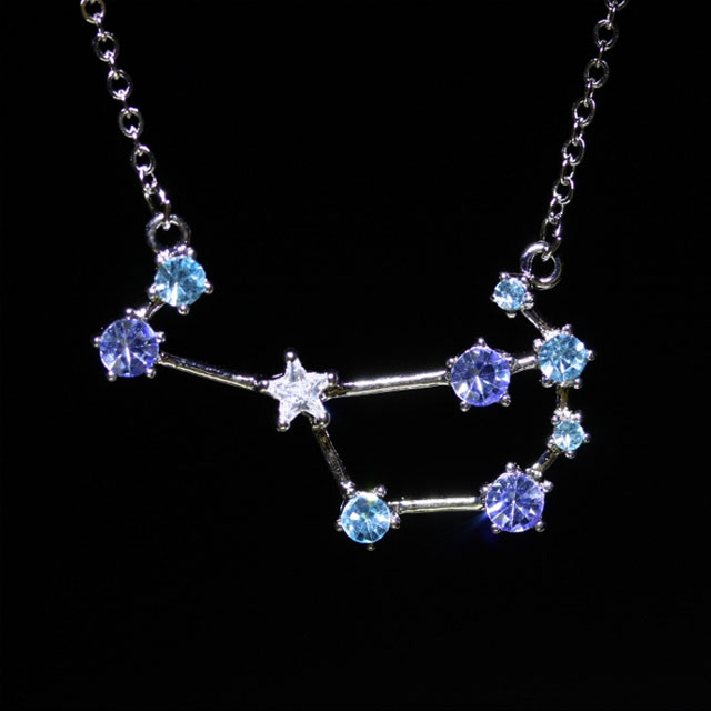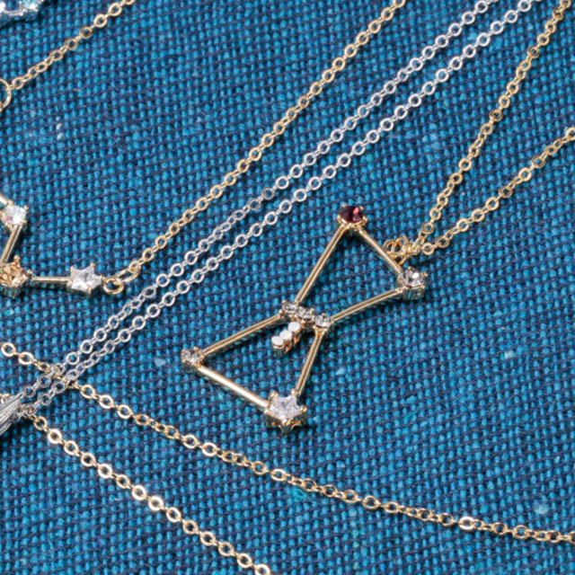 ネックレスのモチーフとなる星座は、星の配置や明るさを細部まで丁寧に表現。輝きの強い星には大きめのストーンを配し、特徴的な色を持つ星は、その印象を映したストーンで再現しています。