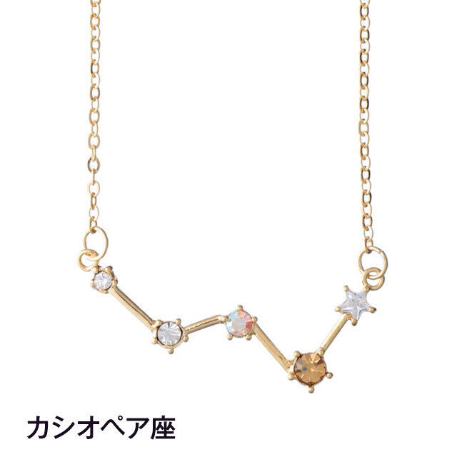 オレンジ色の巨星・シェダルには、存在感のあるオレンジのストーンを使用。さらに、カシオペア座から少し離れた位置には、チェーンに揺れるポラリス(北極星)を1石あしらい、夜空での見かけ上の距離感を繊細に表現しています。