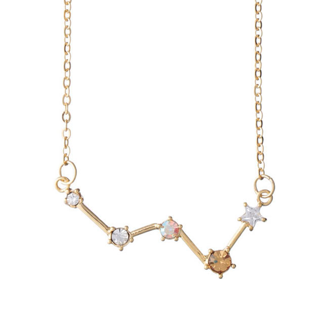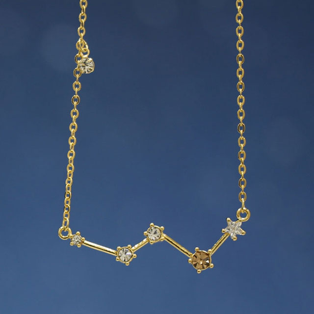 ネックレスのモチーフとなる星座は、星の配置や明るさを細部まで丁寧に表現。輝きの強い星には大きめのストーンを配し、特徴的な色を持つ星は、その印象を映したストーンで再現しています。